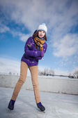 Szczęśliwa młoda dziewczyna cieszyć się Wspierajcie rolkach na rolki