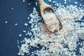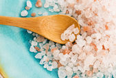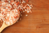 Drewniana gałka z różową solą himalajską na czarnym tle