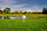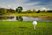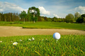 piłeczki do golfa na kurs, Zielona trawa, Błękitne niebo i białe chmury