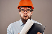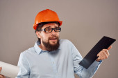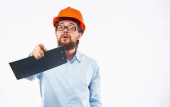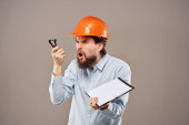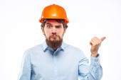 emocjonalny pracownik pomarańczowy farba bezpieczeństwo budownictwo przemysł widok przycięty