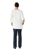 widok z tyłu. kobieta w niebieskiej bluzce patrząc na duży biały ekran.