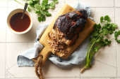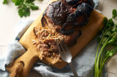 Zdjęcie "rozdrobniona wieprzowina z sosem barbecue i ziołami w misce na drewnianym tle, widok z góry " może być wykorzystywane do celów osobistych i komercyjnych zgodnie z warunkami zakupionej licencji Royalty-free. Obraz jest dostępny do pobrania w jakości wysokiej rozdzielczości do 5760x3840.