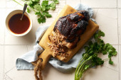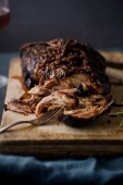 Zdjęcie "Widok góry ciągniętej wieprzowiny z sosem barbecue i ziołami na drewnianej desce do krojenia" może być wykorzystywane do celów osobistych i komercyjnych zgodnie z warunkami zakupionej licencji Royalty-free. Obraz jest dostępny do pobrania w jakości wysokiej rozdzielczości do 5760x3840.