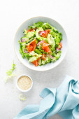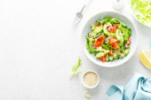 Sałatka z łososia z soloną rybą, sałatą, czerwoną cebulą i ogórkami