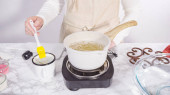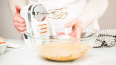 Zdjęcie z góry dłoni kobiety, która miażdży sok cytrynowy ręką do kubka miksera w kuchni..