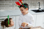 Zdjęcie "Dzieci kroją ciasteczka z ciasta. Brat i jego siostra gotują ciasteczka w domu." może być wykorzystywane do celów osobistych i komercyjnych zgodnie z warunkami zakupionej licencji Royalty-free. Obraz jest dostępny do pobrania w jakości wysokiej rozdzielczości do 5760x3840.