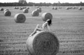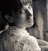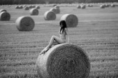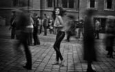 Fotografia artystyczna - brunetka jako pasterz w miejski krajobraz