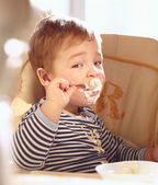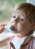 dziewczynka jedzenie jogurt pyszny