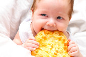 küçük bebek kız lezzetli pizza bir parçası üzerinde ısırma