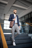 Zdjęcie "Uśmiechnięty brodaty mężczyzna stojący przy biurku, trzymający kartę klubową, wskazujący na nią." może być wykorzystywane do celów osobistych i komercyjnych zgodnie z warunkami zakupionej licencji Royalty-free. Obraz jest dostępny do pobrania w jakości wysokiej rozdzielczości do 5760x3840.