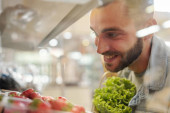 Zdjęcie "Widok z tyłu młodzieńca w jasnej kurtce jeansowej trzymającego papierową torbę i wybierającego soczyste owoce na targu rolniczym" może być wykorzystywane do celów osobistych i komercyjnych zgodnie z warunkami zakupionej licencji Royalty-free. Obraz jest dostępny do pobrania w jakości wysokiej rozdzielczości do 5760x3840.