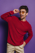 Zdjęcie "szczęśliwy młody człowiek w bordowy sweter golfowy pozowanie odizolowany na szary" może być wykorzystywane do celów osobistych i komercyjnych zgodnie z warunkami zakupionej licencji Royalty-free. Obraz jest dostępny do pobrania w jakości wysokiej rozdzielczości do 5760x3840.