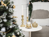 Zdjęcie "Stylowa kompozycja świąteczna we wnętrzu salonu z białym kominem, choinką i wieńcem, gwiazdami, prezentami i dekoracją. Nadchodzi klauzula Świętego Mikołaja. Wzór." może być wykorzystywane do celów osobistych i komercyjnych zgodnie z warunkami zakupionej licencji Royalty-free. Obraz jest dostępny do pobrania w jakości wysokiej rozdzielczości do 5760x3840.
