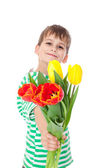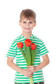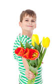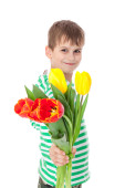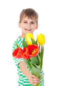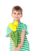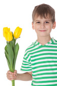 młody chłopak gospodarstwa żółte tulipany