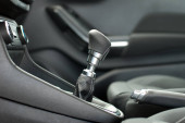 Ręczna skrzynia biegów i hamulec ręczny wewnątrz samochodu osobowego