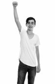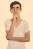 Twarz młodego szczęśliwego perskiego nastolatka uśmiechniętego
