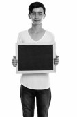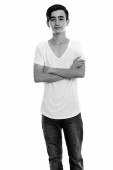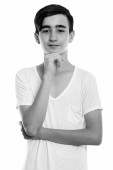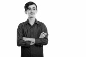 Studio ujęcie młodego przystojnego perskiego nastolatka stojącego z skrzyżowanymi ramionami