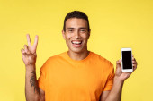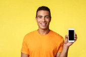Zdjęcie "Portret przystojnego, afrykańsko-amerykańskiego mężczyzny, wyglądającego na zdumionego, pokazującego ekran smartfona i kartę kredytową, stojącego na fioletowym tle" może być wykorzystywane do celów osobistych i komercyjnych zgodnie z warunkami zakupionej licencji Royalty-free. Obraz jest dostępny do pobrania w jakości wysokiej rozdzielczości do 5760x3840.