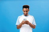 Zdjęcie "Portret afrykańsko-amerykańskiego faceta wyglądającego na zachwyconego kartą kredytową, robiącego zakupy online na smartfonie, stojącego nad fioletowym tłem" może być wykorzystywane do celów osobistych i komercyjnych zgodnie z warunkami zakupionej licencji Royalty-free. Obraz jest dostępny do pobrania w jakości wysokiej rozdzielczości do 5760x3840.