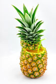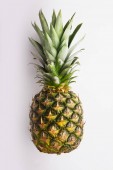 Seria zdjęć z małym ananasem niemowlęcym na białym, odizolowanym tle w dłoni i nie tylko, piękne ilustracyjne zdjęcie makro dla strony
