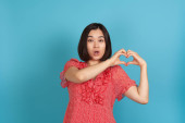 zbliżenie portret śmiejącej się Azjatki młoda kobieta w świątecznym wieńcu z czerwoną szminką korzystających z nowego roku prezent