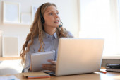 Zdjęcie "Wolny strzelec kobiet biznesowych za pomocą tabletu pracy wideokonferencji z klientem w miejscu pracy w domu" może być wykorzystywane do celów osobistych i komercyjnych zgodnie z warunkami zakupionej licencji Royalty-free. Obraz jest dostępny do pobrania w jakości wysokiej rozdzielczości do 5760x3840.