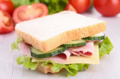 smaczne kanapki z szynką, na białym tle
