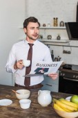 zmartwiony afrykański amerykański biznesmen jedzący śniadanie i myślący w domu
