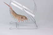 Zdjęcie "widok z boku wspólnego domu myszy gra w kole, mus musculus," może być wykorzystywane do celów osobistych i komercyjnych zgodnie z warunkami zakupionej licencji Royalty-free. Obraz jest dostępny do pobrania w jakości wysokiej rozdzielczości do 5760x3840.