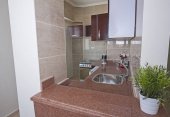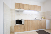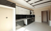 Wystrój wnętrz pokazujący nowoczesną kuchnię i urządzenia w luksusowym salonie apartamentów