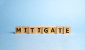 MITIGATE słowo wykonane z klocków, koncepcja biznesu..