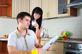 mąż i żona mają śniadanie
