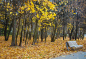 Dziewczynka spacerująca w jesiennym parku. Słoneczny jesienny dzień. Szczęśliwego dzieciństwa.