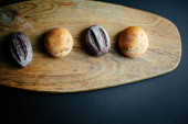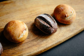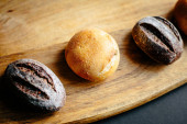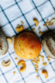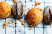 bułki na stole pokryte obrusem. Minimalny styl konceptualny martwa natura fotografii.