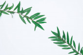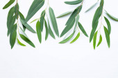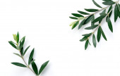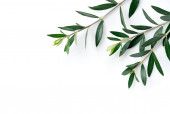 Gałęzie i liście oliwne umieszczone na białym tle z przestrzenią do kopiowania. Materiał tła rośliny