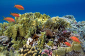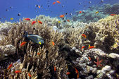 Kolorowa rafa koralowa z koralami twardymi na dnie Morza Czerwonego
