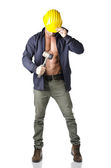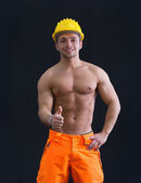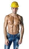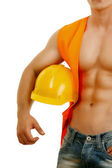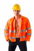 Mięśni młody budowy pracownik przystojny uśmiechnięty