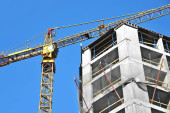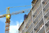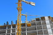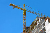Dźwig i budynek w budowie przed błękitnym niebem