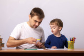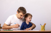 Zdjęcie "Ojciec z synem, pisanie" może być wykorzystywane do celów osobistych i komercyjnych zgodnie z warunkami zakupionej licencji Royalty-free. Obraz jest dostępny do pobrania w jakości wysokiej rozdzielczości do 5760x3840.