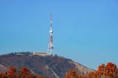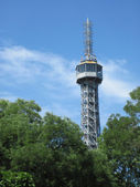 widok na wieżę widokową nad parkiem leśnym nad Wełtawą, słoneczny letni dzień, turystyka w stolicy, dobre samopoczucie
