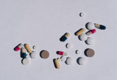 Zdjęcie "Butelki medyczne i tabletki rozlewają się na pastelowe niebieskie tło. Widok z góry z miejsca kopiowania. Opieka zdrowotna, apteka, koncepcja medycyny" może być wykorzystywane do celów osobistych i komercyjnych zgodnie z warunkami zakupionej licencji Royalty-free. Obraz jest dostępny do pobrania w jakości wysokiej rozdzielczości do 5760x3840.