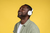 Zdjęcie "Młody afrykańsko-amerykański portret mężczyzny odizolowany na żółtym tle studia, wyraz twarzy. Piękny męski portret półdługości z przestrzenią do kopiowania." może być wykorzystywane do celów osobistych i komercyjnych zgodnie z warunkami zakupionej licencji Royalty-free. Obraz jest dostępny do pobrania w jakości wysokiej rozdzielczości do 5760x3840.