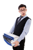 zabawny człowiek z dużą ilością folderów
