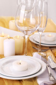 Koncepcja romantycznego nakrycia stołu noworocznego na szarym stole