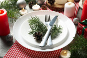 Zdjęcie "Koncepcja romantycznego nakrycia stołu noworocznego na szarym stole" może być wykorzystywane do celów osobistych i komercyjnych zgodnie z warunkami zakupionej licencji Royalty-free. Obraz jest dostępny do pobrania w jakości wysokiej rozdzielczości do 5760x3840.