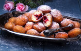 ciasteczka pyszne brzoskwinie na stole na czarnym tle