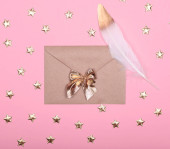 List kopertowy z pustym weselem i miejscem na tekst na czerwonym tle z gwiazdami.