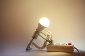 Pomysł na biznes - osoba żarówka na tle z karty miejsca kopiowania