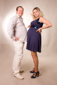 Zdjęcie matki oczekującej w ciemno niebieską sukienkę