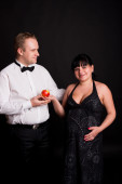 Zdjęcie mężczyzny i jego ciężarnej żony w studio z owocami